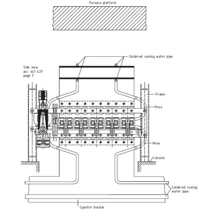 术语翻译:Furnace platform 电炉平台Soldered cooling water pipe 焊接冷却水管Frame 支架Hose 软管Console 控制台Capacitor busbar 电容器母线